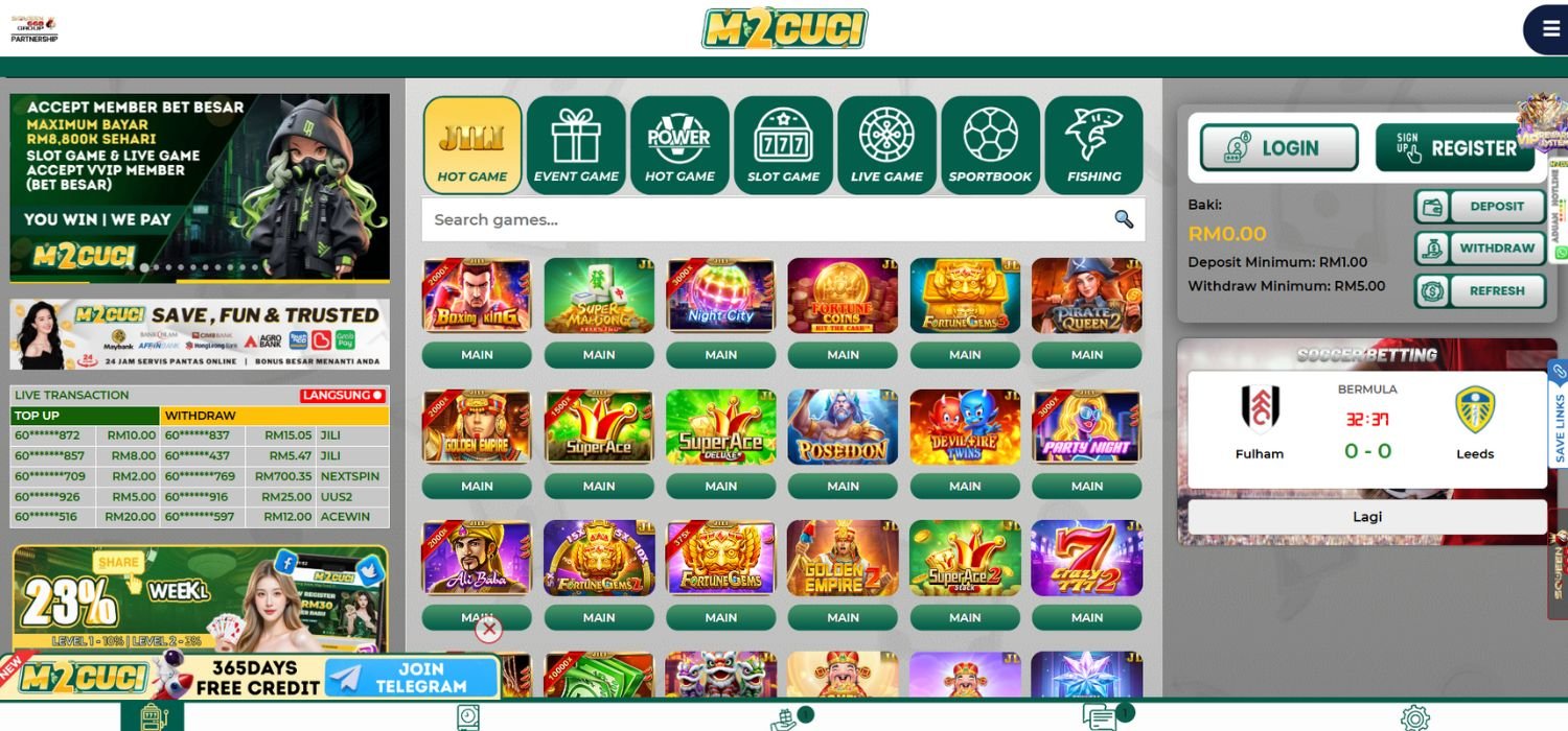 M2CUCI is Malaysia’s trusted online casino, offering slots, live dealers, and sports betting with exciting free credit bonuses. New players get RM50 free credit on registration, RM10 daily rewards, and RM10 for app downloads. Enjoy fast withdrawals, top games like JILI, Mega888, Kiss918, Pussy888, and more!